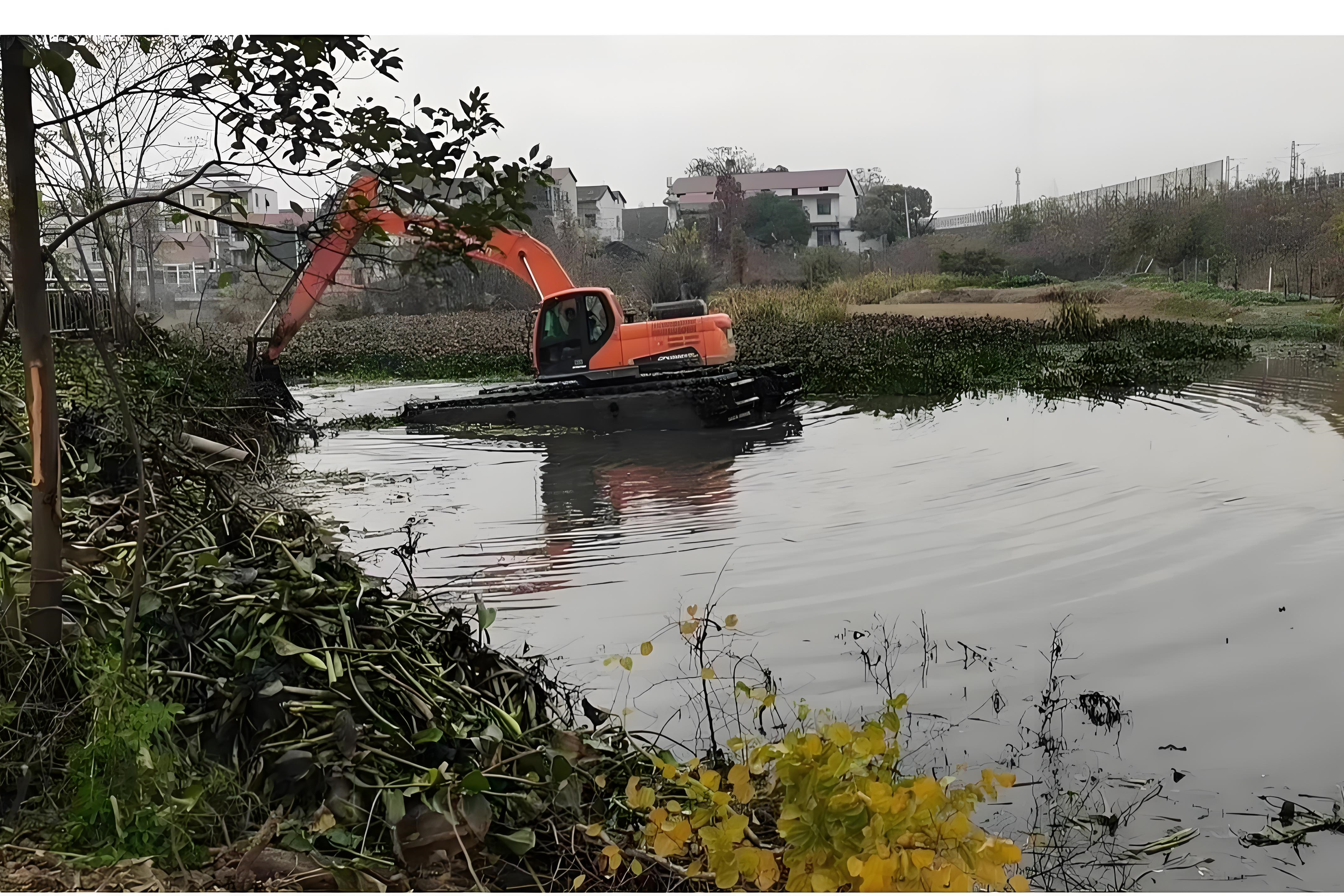 最后,考慮周邊環(huán)境,比如是否靠近房屋、電線桿,邊坡是否有樹木,這些都會影響挖掘機的作業(yè)空間和清淤深度。施工隊通常會制定多個方案,綜合評估后選擇最合適的深度。
